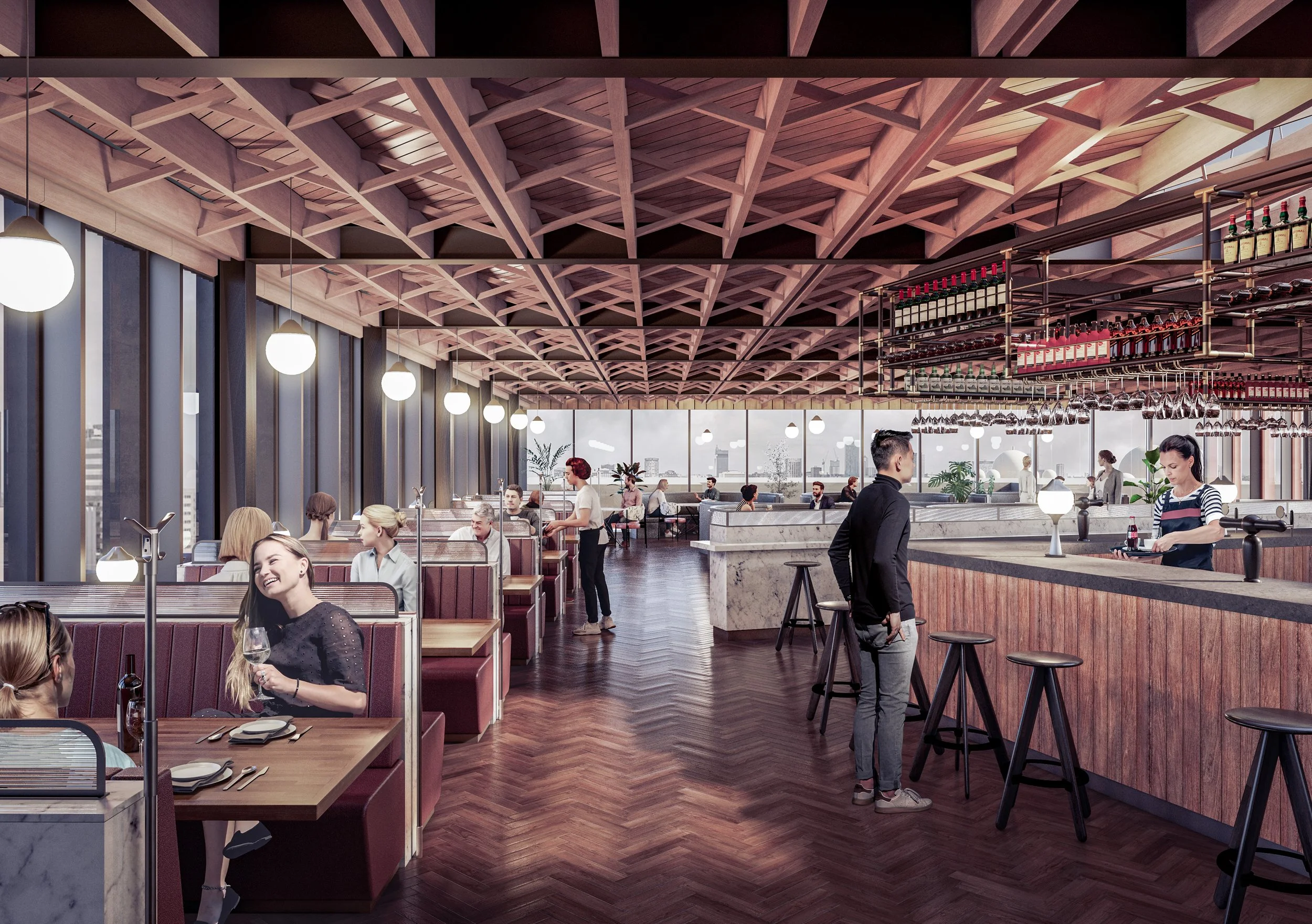 The proposed three-storey rooftop extension will be set back from the parapet and terraced backwards as the volume rises. A single-storey extension to the south will also be set back from the parapet and above this rests a new restaurant with a pitched roof matching the form of the original. The new elements make explicit reference to the qualities of the original building, whilst also utilising modern methods of construction and material technologies.